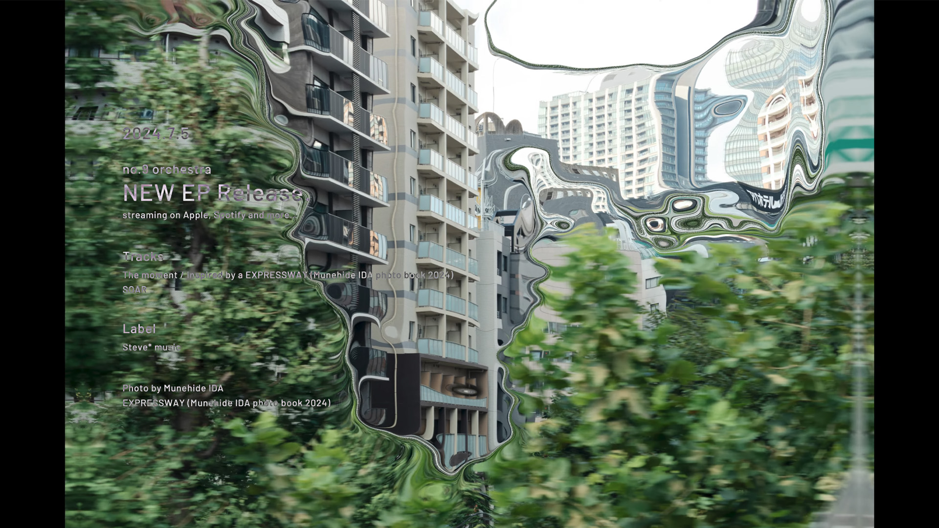 作曲家・城 隆之さん率いるno.9 orchestraが発表した楽曲「The moment」。写真家・井田宗秀氏の写真集「EXPRESSWAY」からインスピレーションを受けて生まれたこの楽曲のミュージックビデオを、石濱が制作しました。